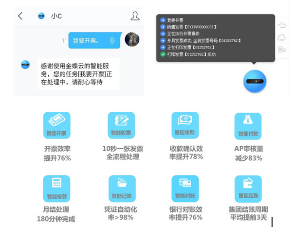 2.接入AI交互服務(wù),智能財務(wù)機器人小K提供AI語音服務(wù)基礎(chǔ)設(shè)施、開票服務(wù)、銷售及庫存查詢服務(wù)和發(fā)票智能接收等服務(wù),引領(lǐng)財務(wù)機器人2.0時代。