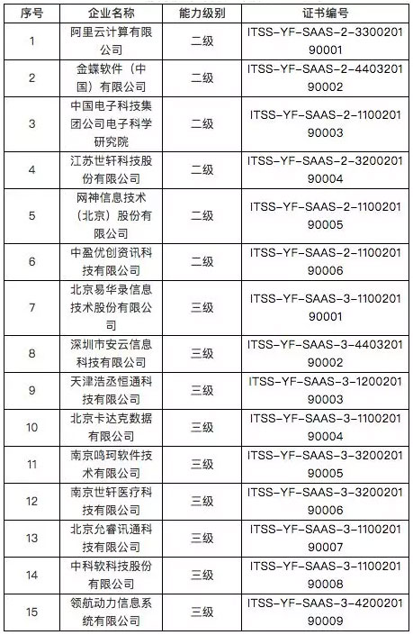 通過SaaS服務(wù)能力符合性評估的企業(yè)名單